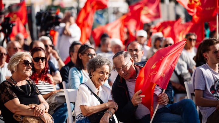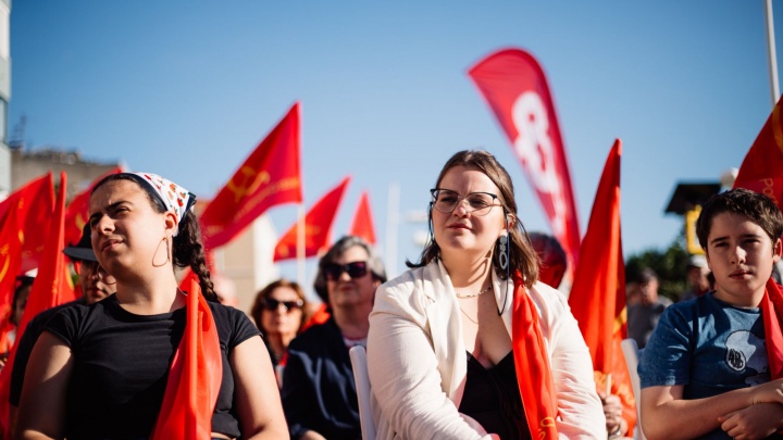 Cá estamos, aqui está o Partido Comunista Português, ao serviço dos trabalhadores e do povo. Com confiança para andar para a frente, com consciência das dificuldades, mas também com a certeza das potencialidades. Cá estamos para impulsionar a luta dos trabalhadores e do nosso povo.