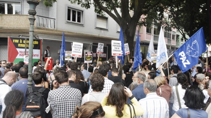 Os manifestantes expressaram o seu total apoio à posição comum das organizações promotoras, nas quais se inclui o PCP. Também no Porto e à mesma hora se realizou uma concentração exigindo o fim dos crimes de Israel e expressando a sua solidariedade com a luta do povo palestiniano.