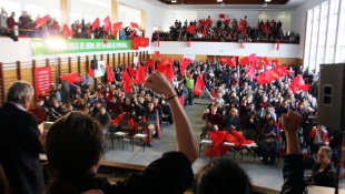 Deste Partido que aqui está ancorado na convicção da valia e actualidade de um Projecto que persegue o nobre ideal da emancipação e libertação da exploração dos trabalhadores e dos povos, porque queremos uma vida melhor para quem trabalha, porque queremos um Portugal desenvolvido, de progresso, independente, mais justo e mais solidário.